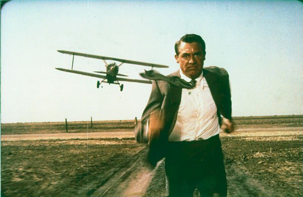 Cary Grant belaagd door een vliegtuigje. Het is een van de grote achtervolgingen uit de filmgeschiedenis. Het is een scene die, ooit gezien, op het netvlies gegrift staat.